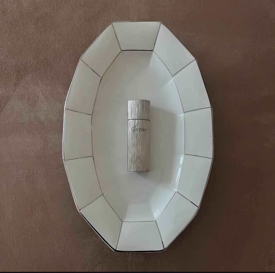 Antique Silver-detailed Ceramic Dish