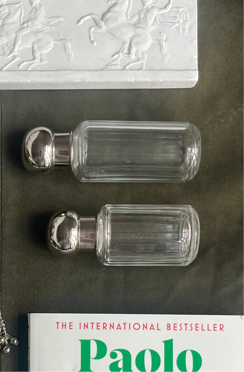 Art Deco Glass Perfume Bottle with Silver Plated Lid