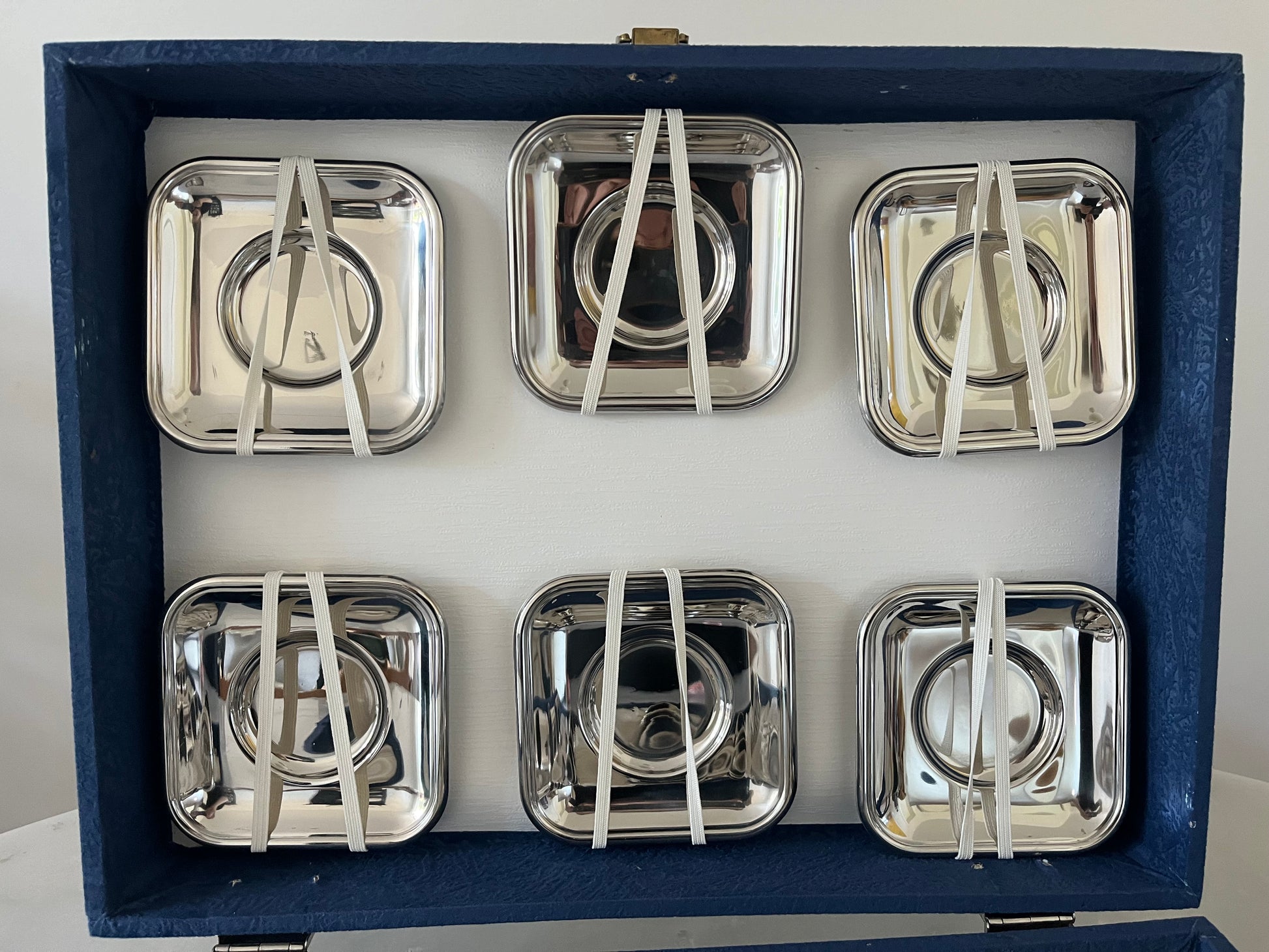 Delivered in its original box. Includes: 6 espresso coffee cups with saucers and spoons, plus sugar pot.