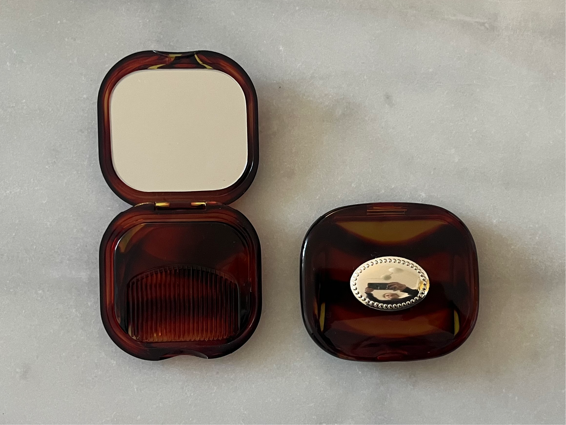 Retro Faux Tortoise Pocket Mirror with Silver Plated Detail