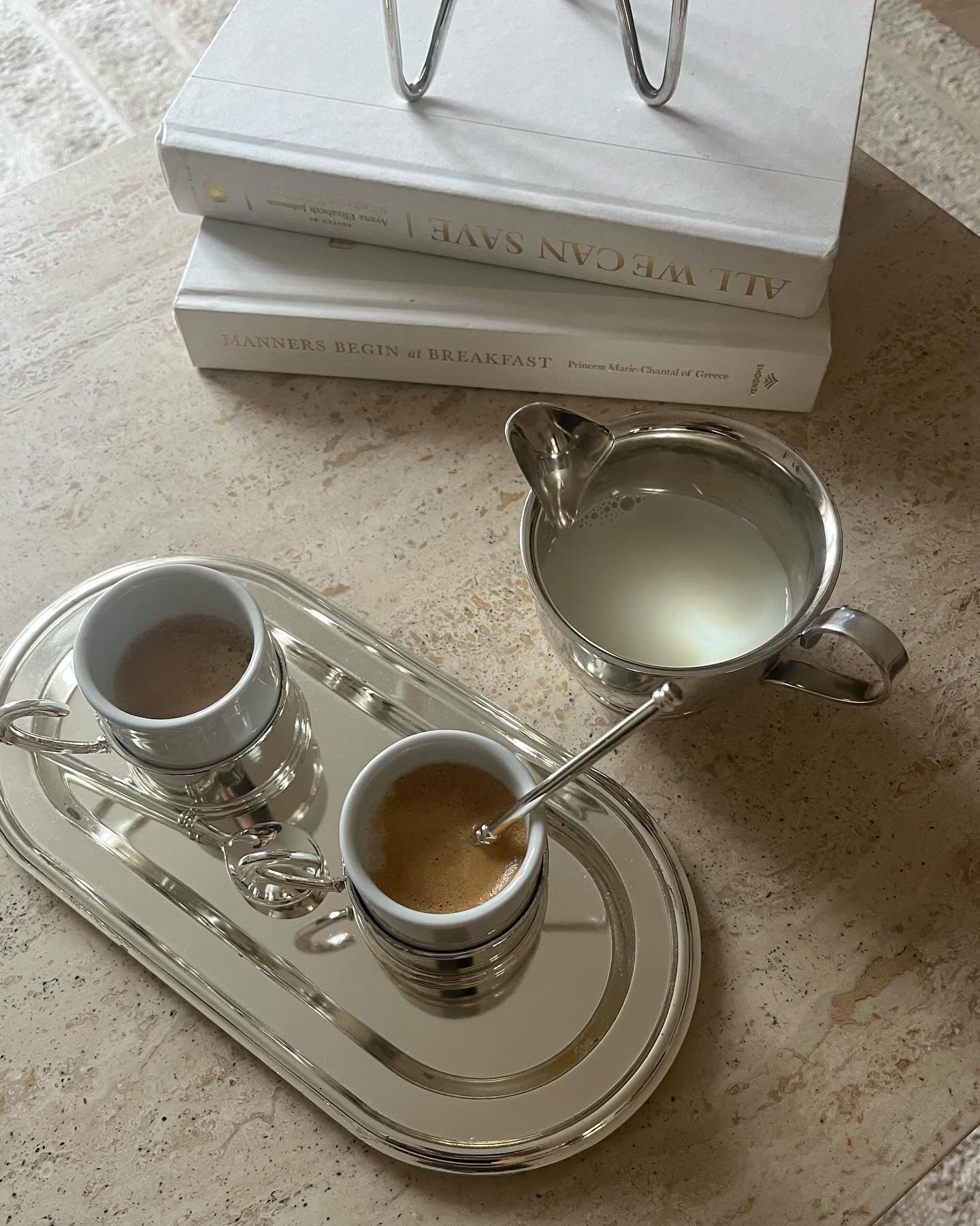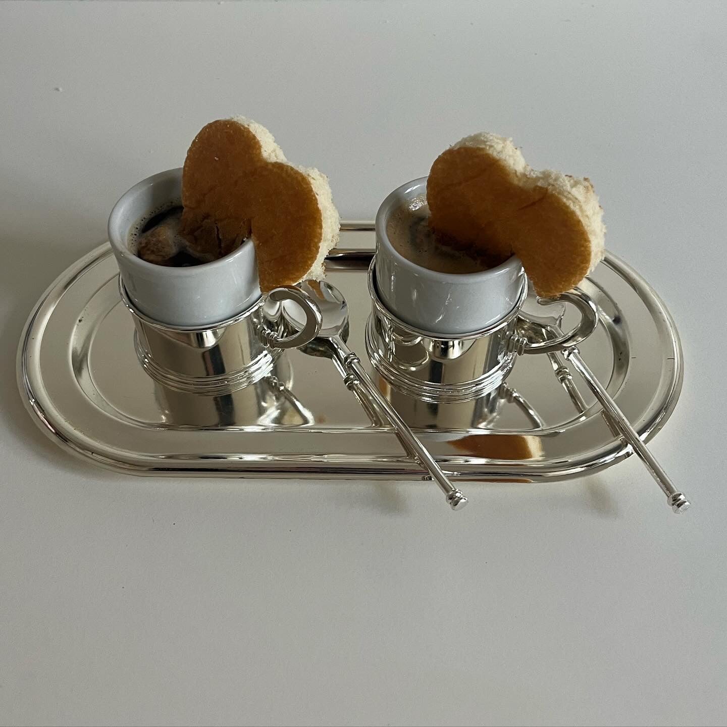 Silver Plated Double-Espresso Coffee Cup on Tray