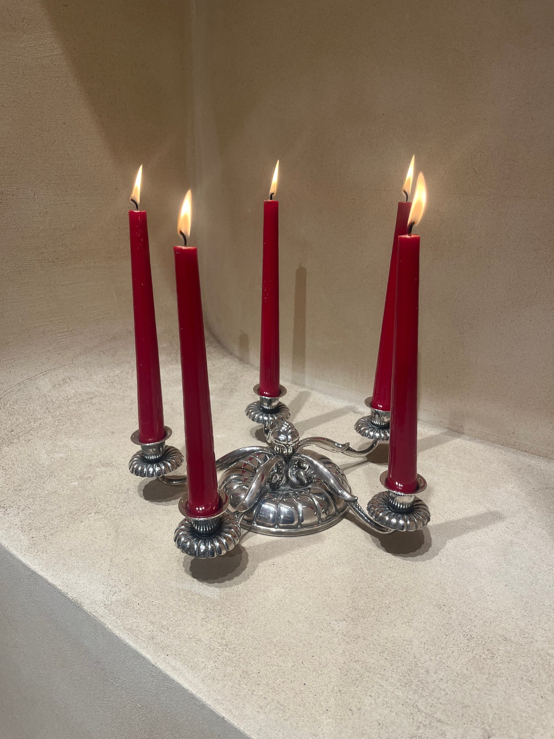 Unique “Low” Five-armed Silver Plated Candle-holder