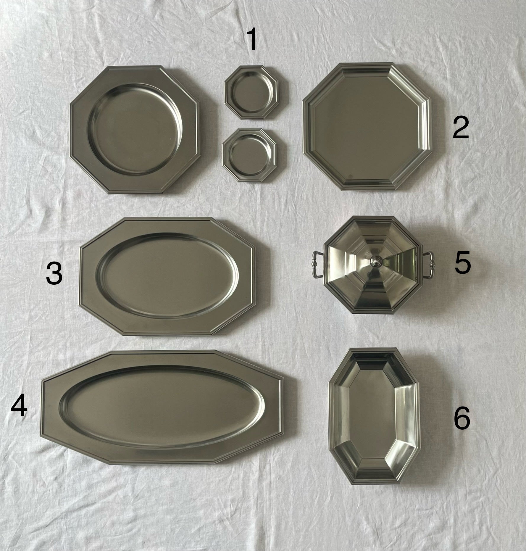 Condition: excellent vintage condition with minimal signs of wear. Piece 4 has scratches to the inside of the dish but the lid is in excellent condition.