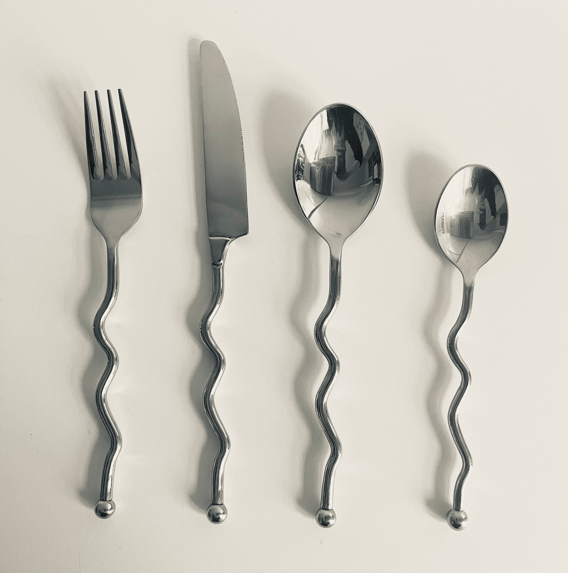 Rare French Wiggle Cutlery (full set of knife, fork, table spoons and tea spoon)